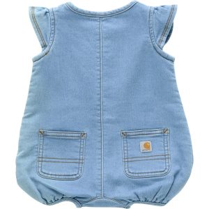CARHARTT KIDS SHORT SLEEVE DENIM HENLEY ROMPER/ LT WASH